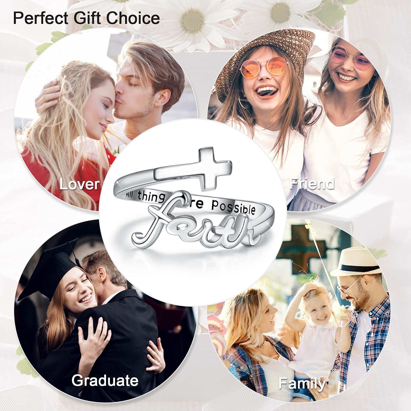 The cross ring implies a person's lifelong faith. "Everything is possible" is engraved on the inside of the ring. Believe in your faith and your abilities. All dreams or things will succeed or come true. Faith makes everything possible.